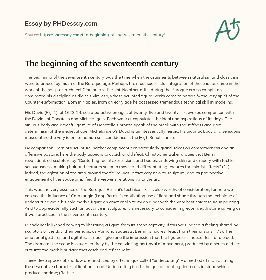 Order custom essay The beginning of the seventeenth century with free plagiarism report