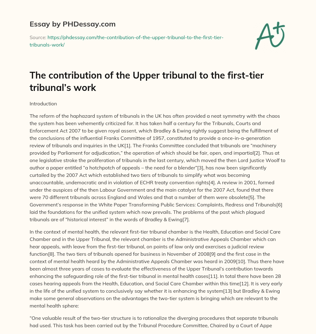 Order custom essay The contribution of the Upper tribunal to the first-tier tribunal’s work with free plagiarism report