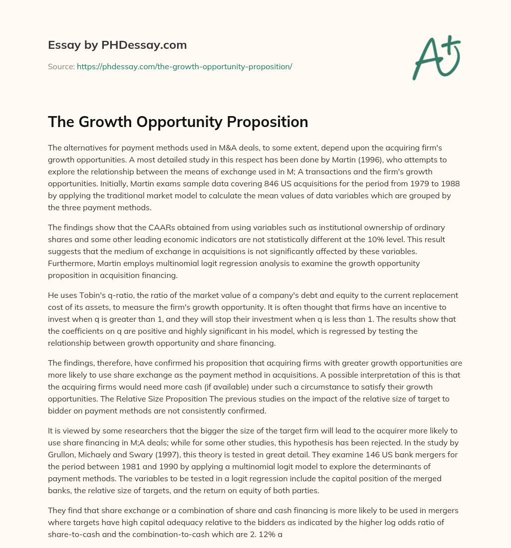 The Growth Opportunity Proposition. (2018, Sep 29). Retrieved from https://phdessay.com/the-growth-opportunity-proposition/