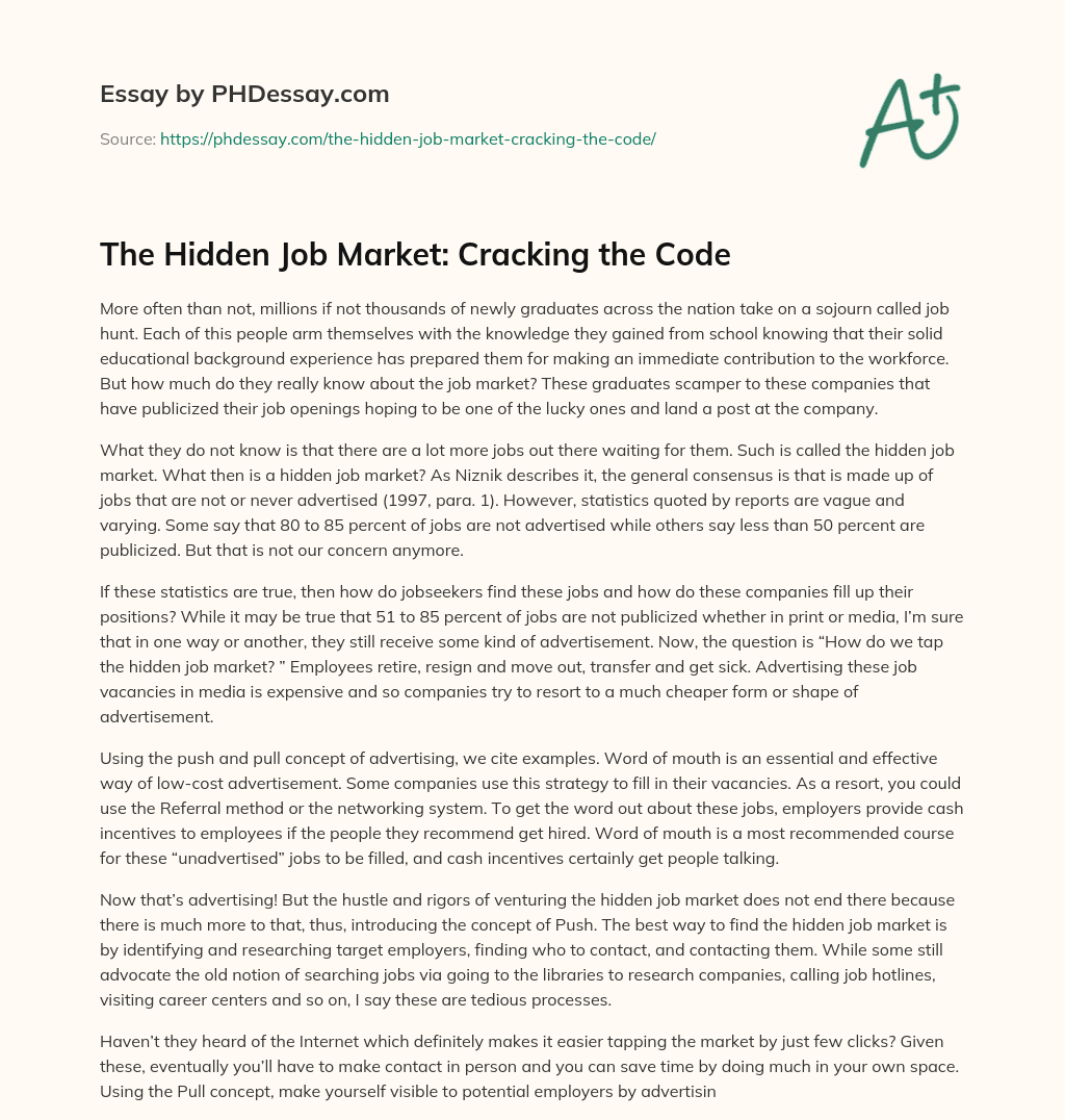 Order custom essay The Hidden Job Market: Cracking the Code with free plagiarism report