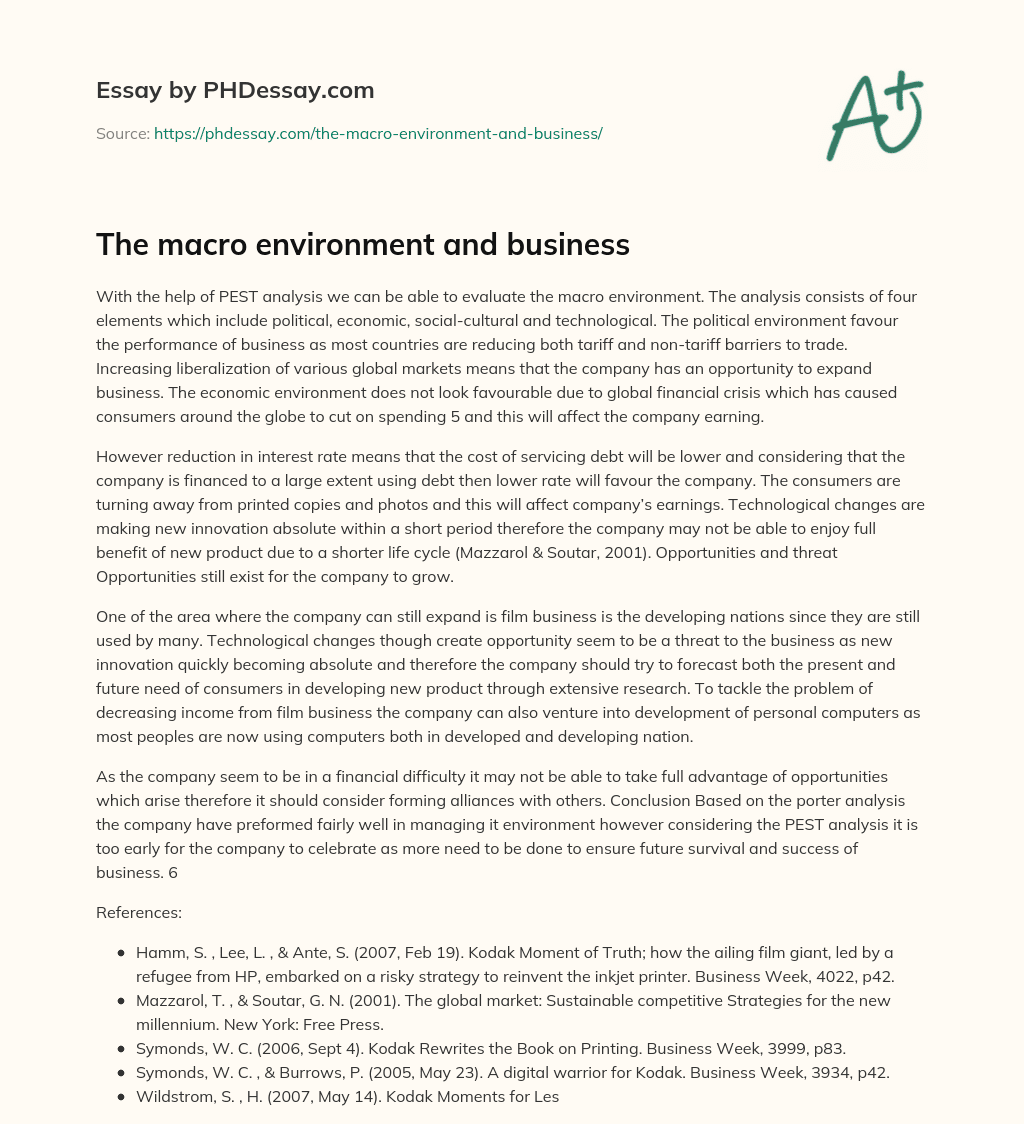 Order custom essay The macro environment and business with free plagiarism report