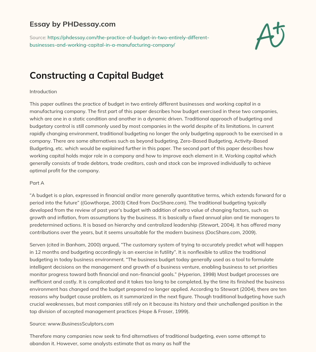 Order custom essay Constructing a Capital Budget with free plagiarism report