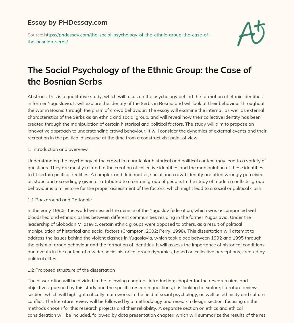 Order custom essay The Social Psychology of the Ethnic Group: the Case of the Bosnian Serbs with free plagiarism report