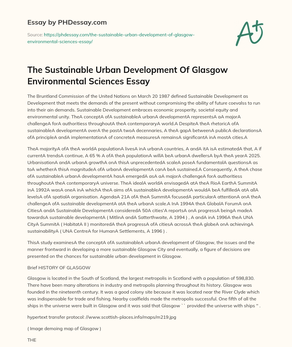 Order custom essay The Sustainable Urban Development Of Glasgow Environmental Sciences Essay with free plagiarism report