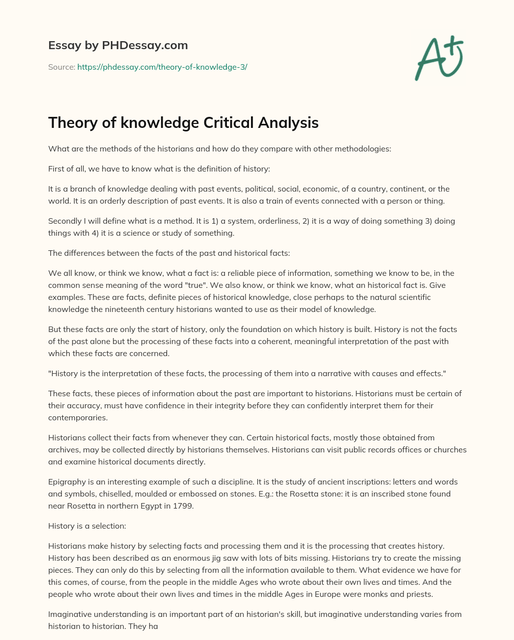 Order custom essay Theory of knowledge Critical Analysis with free plagiarism report