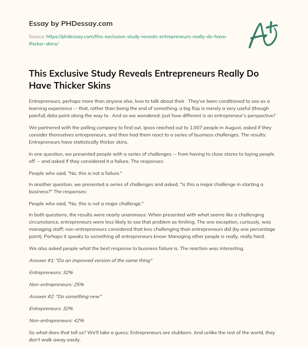 Order custom essay This Exclusive Study Reveals Entrepreneurs Really Do Have Thicker Skins with free plagiarism report