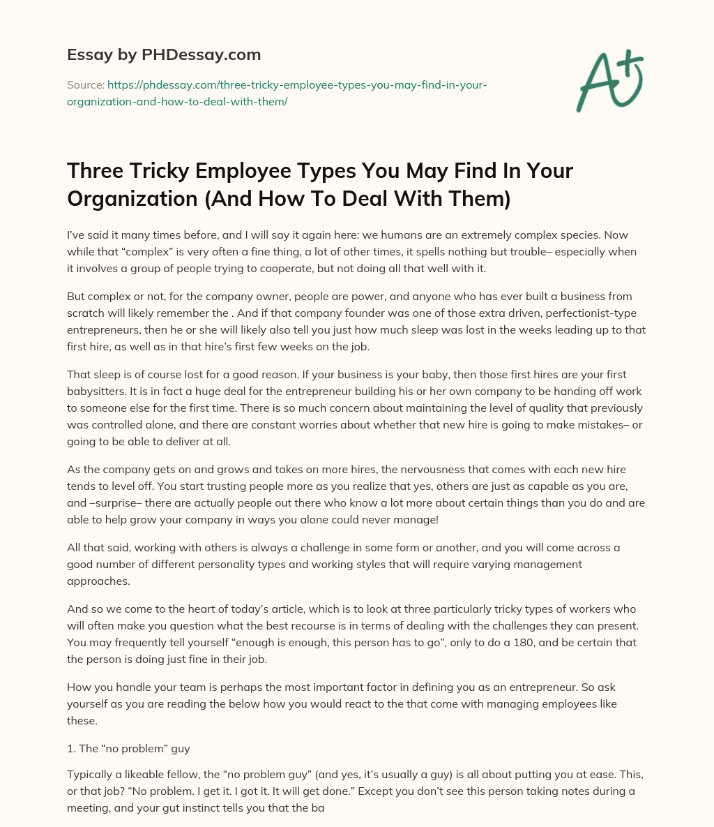 Order custom essay Three Tricky Employee Types You May Find In Your Organization (And How To Deal With Them) with free plagiarism report