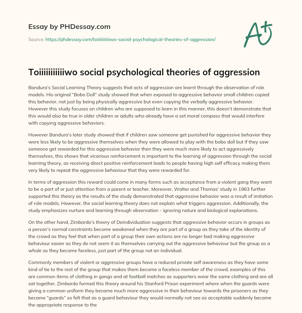 Order custom essay Toiiiiiiiiiiiwo social psychological theories of aggression with free plagiarism report
