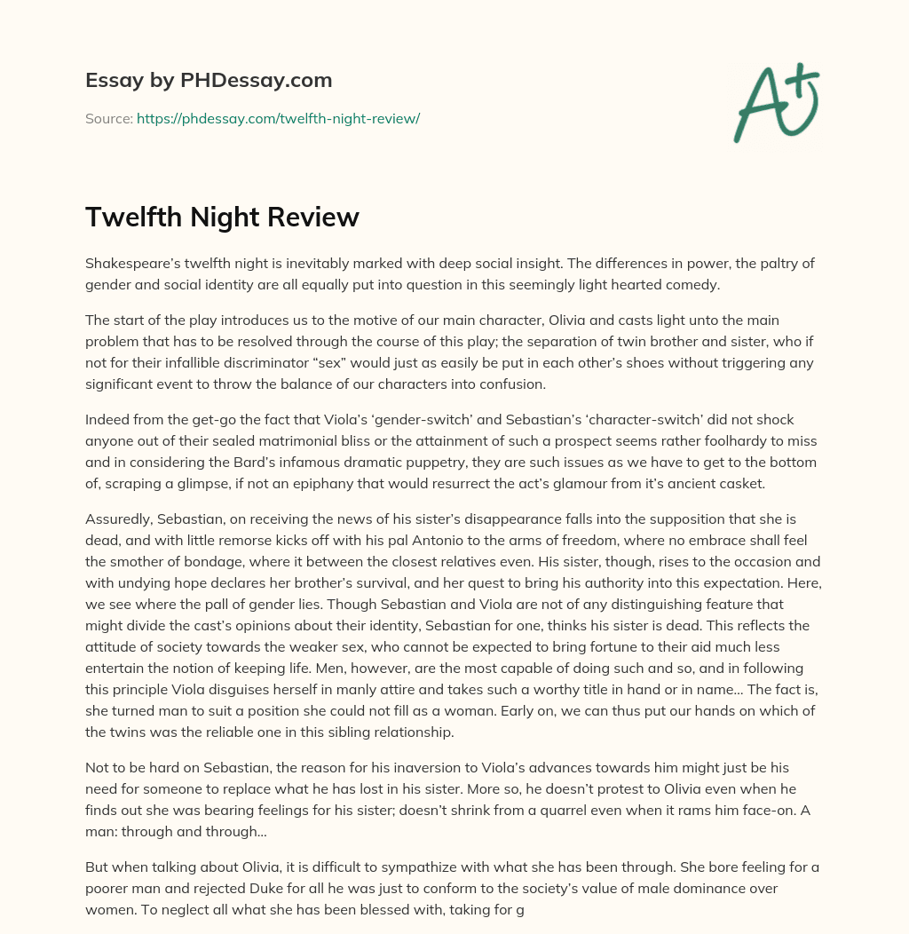 Twelfth Night Review. (2017, Jul 11). Retrieved from https://phdessay.com/twelfth-night-review/