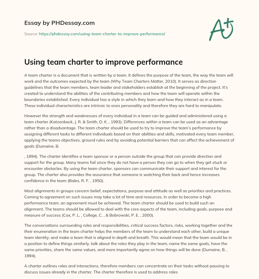 Order custom essay Using team charter to improve performance with free plagiarism report