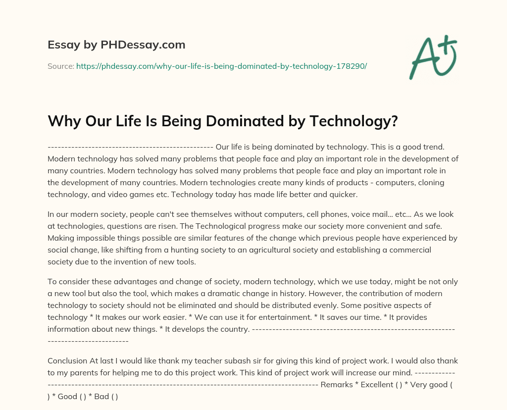 Why Our Life Is Being Dominated by Technology?. (2016, Dec 31). Retrieved from https://phdessay.com/why-our-life-is-being-dominated-by-technology-178290/