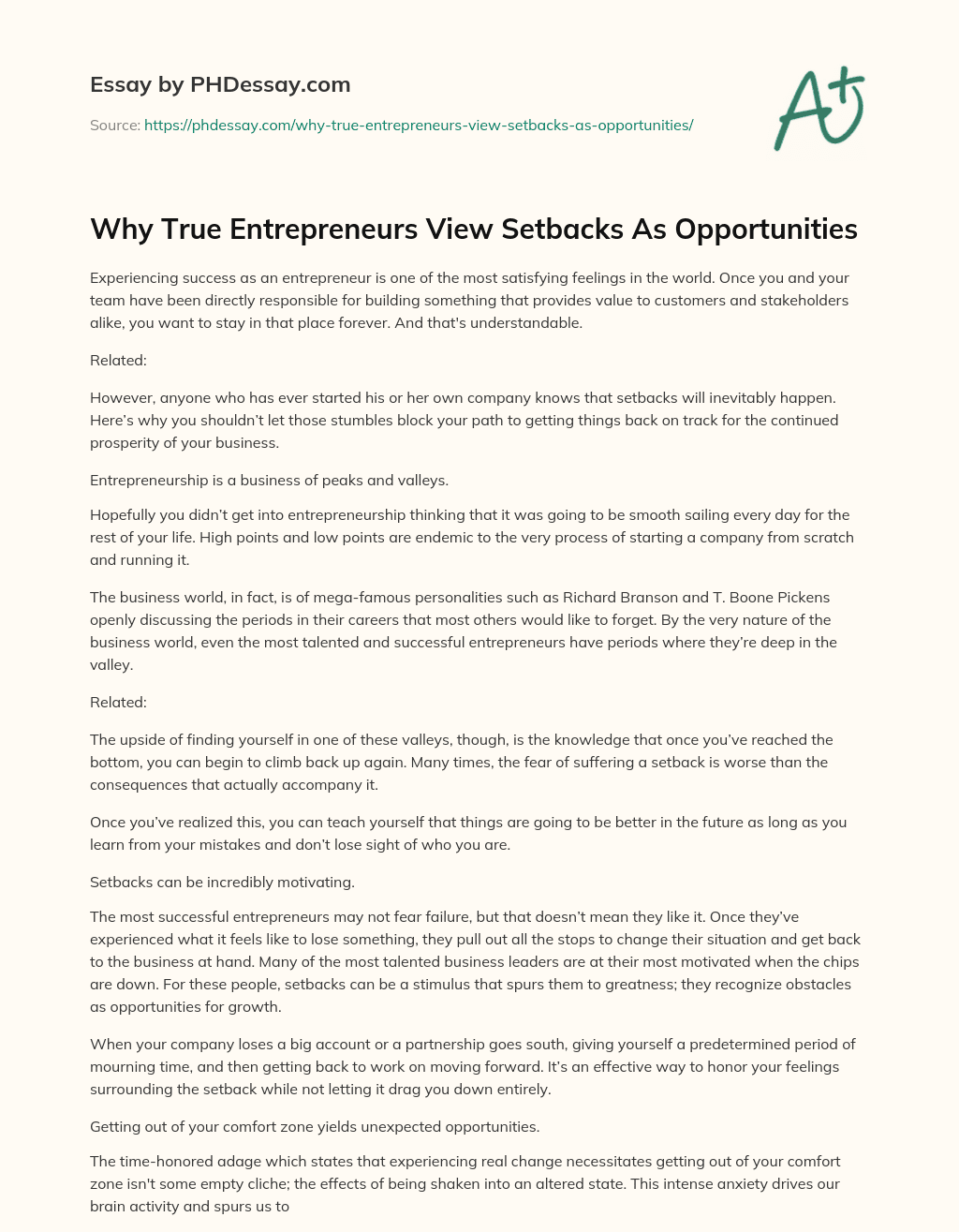 Order custom essay Why True Entrepreneurs View Setbacks As Opportunities with free plagiarism report